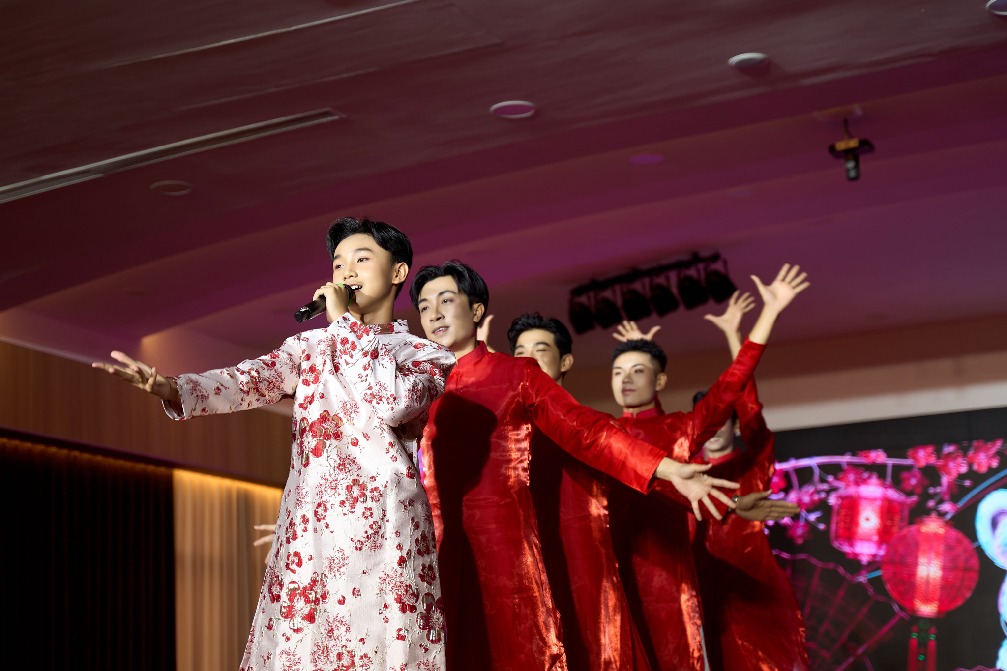 Không khí buổi lễ tiếp tục được kết nối bằng chuỗi tiết mục biểu diễn nghệ thuật và ca nhạc, đan xen giữa các nội dung tổng kết, vinh danh, trao chứng nhận, tạo nên nhịp điệu cảm xúc xuyên suốt buổi lễ. Tiết mục biểu diễn của Vũ Bá Minh Đăng – Quán quân hạng mục Dance Cosmo Kid’s Star 2025 mang đến không khí tươi mới cho chương trình. Với ca khúc Hạnh Phúc Xuân Ngời Minh Đăng ghi điểm khi thể hiện trọn vẹn cả giọng hát lẫn khả năng vũ đạo, tạo nên phần trình diễn rộn ràng, giàu năng lượng.